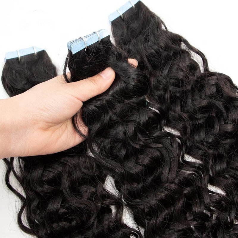 Water Wave Tape in Hair Extensions Human Hair 12Inch Double Sided Tape ins for Women Real Hairs Tape on Extensions Seamless Adhesive Curly Hair Extension 20pcs 50g/pack