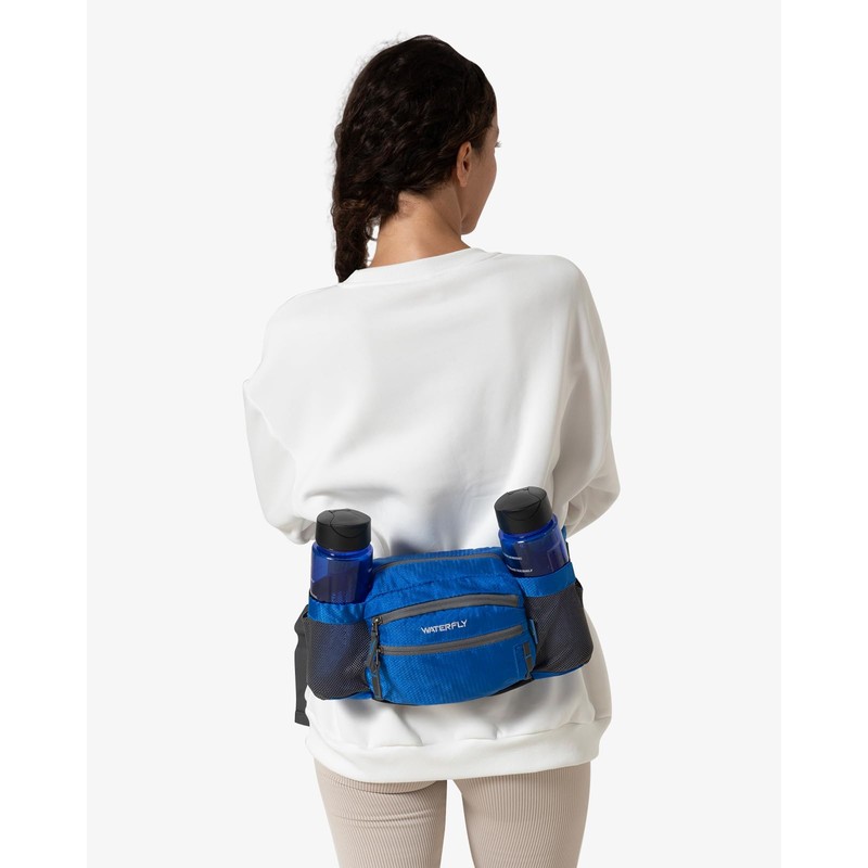 WATERFLY Riñonera Grande para Senderismo con Dos Portabotellas Bolsa Liviana para Cinturón Lumbar para Cadera Trotar Ciclismo Caminar Camping Mujer Hombre