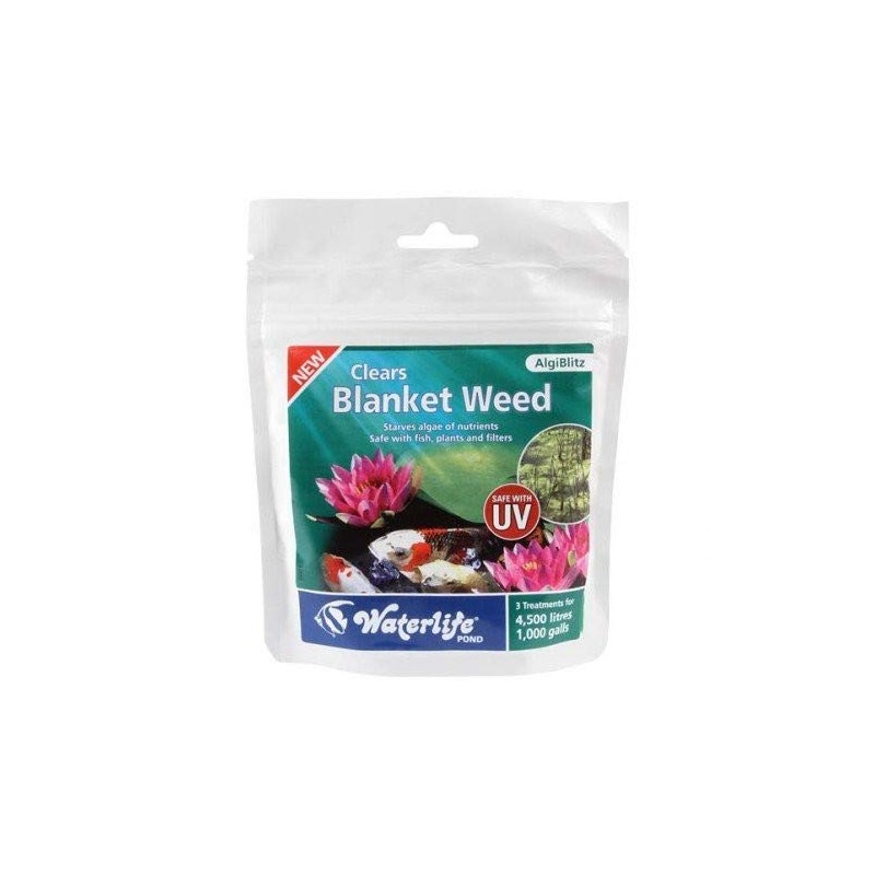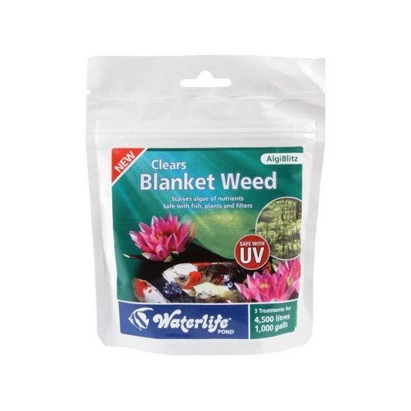 1) Remove excessive blanketweed to prevent decaying in pond. AlgiBlitz is safe with ornamental pond fish, plants and filtration bacteria.