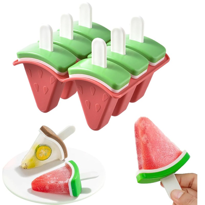 Watermelon Shape Popsicle Molds, Ice Pop Silicone Molds 6 Cavities, Ice Cream Pop Mold, Silicone Popsicles Molds, DIY Ice Pop Molds With Sticks