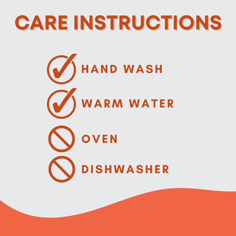 • Care Instructions: Hand wash in warm water. Keep out of dishwashers and hot water.