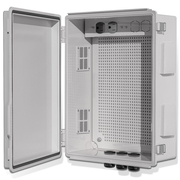 Waterproof ABS Enclosure Cabinet Junction Box, Ventilated Design, Indoor/Outdoor Use, with Mounting Panel, High Power Outlets. (Grey Cover, 15.7"x11.9"x7.2")