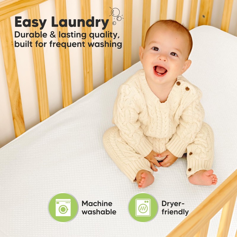 - Durable, Easy to Clean – Life with a toddler is messy, this crib mattress topper is built to handle it. Machine washable and dryable, it holds up to multiple washes, staying soft, waterproof, and durable— ready for another day of baby adventures.