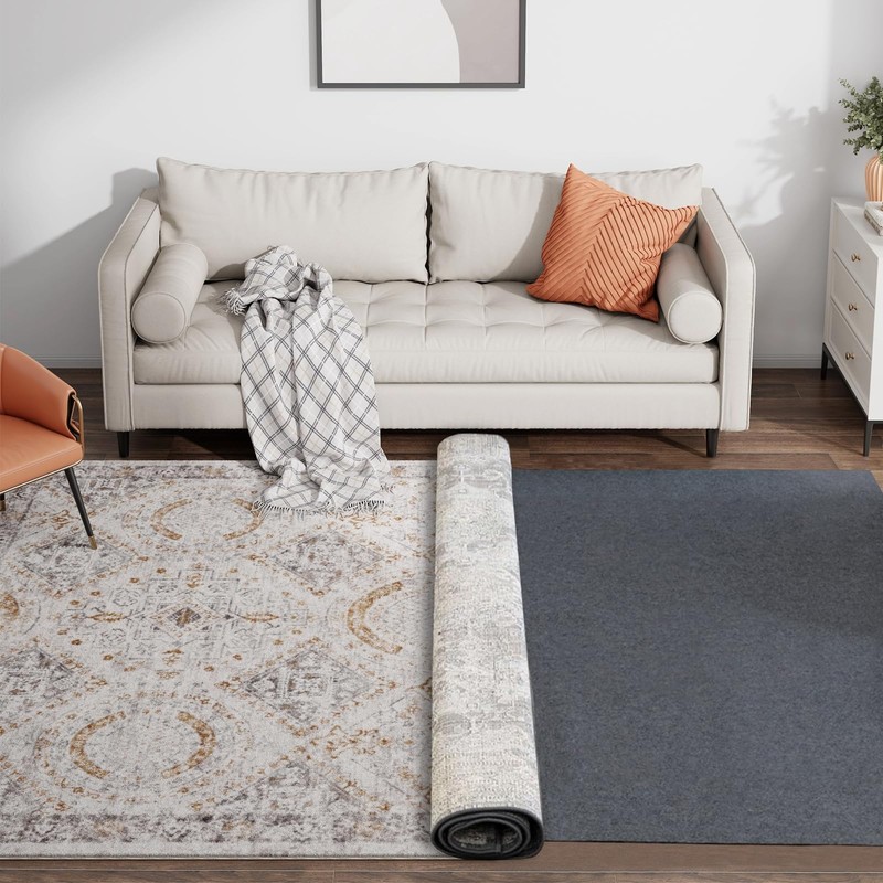 - Non-Slip Rug Pad: The back of the felt rug pad has a rubber anti-slip backing, which can effectively solve the problem of rug corners lifting and folds shifting. Keeps rugs securely in place even in high-traffic areas. It is suitable for smooth surfaces such as wooden floors and tiles, and is very suitable for families with children or pets