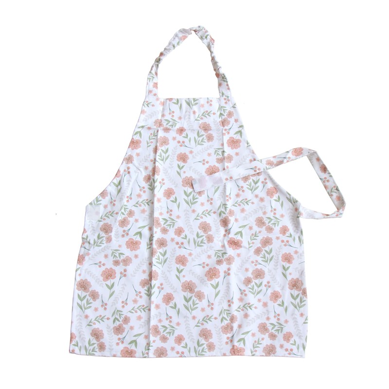 Waterproof Kids Apron Pattern Options (White & Light Red Floral Pattern)
