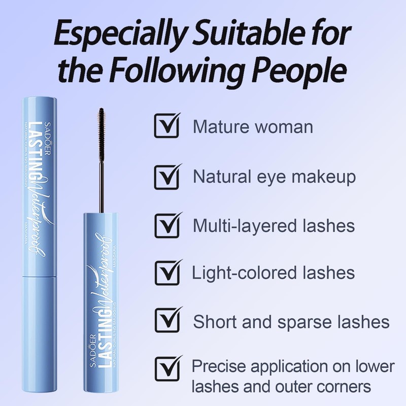 Waterproof Mascara for Fine Short Lashes & Older Women – Smudge-Proof, Clump-Free, Natural Curling, Ultra-Fine Brush Take Care of Every Tiny Eyelash, Quick-Drying, Easy Removal