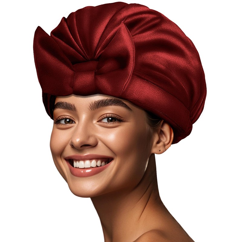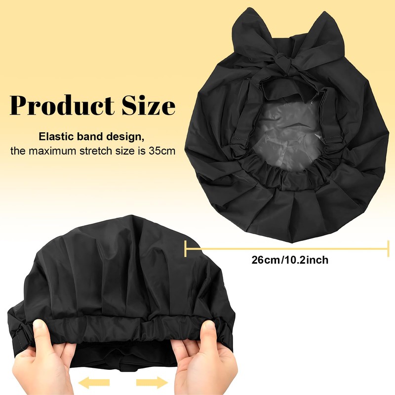 - Waterproof Reusable Double Layer Shower Cap with Elastic Strap Red