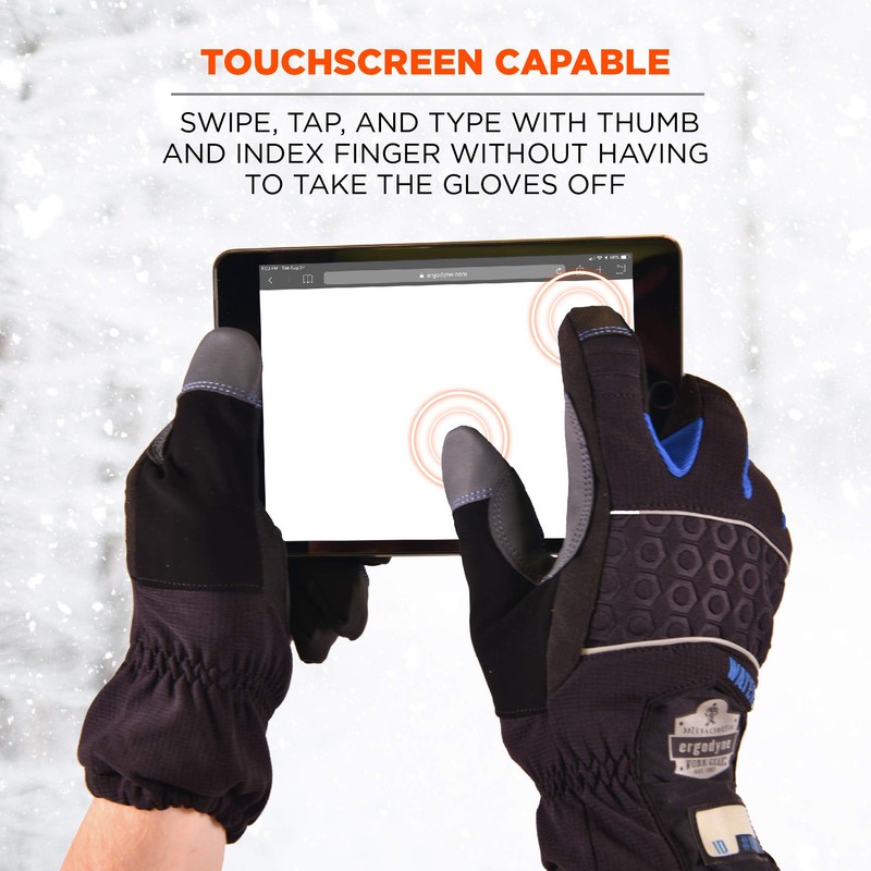 - Touchscreen capable – swipe, tap, and type on smartphones and tablets with thumb and index finger without having to take the gloves off