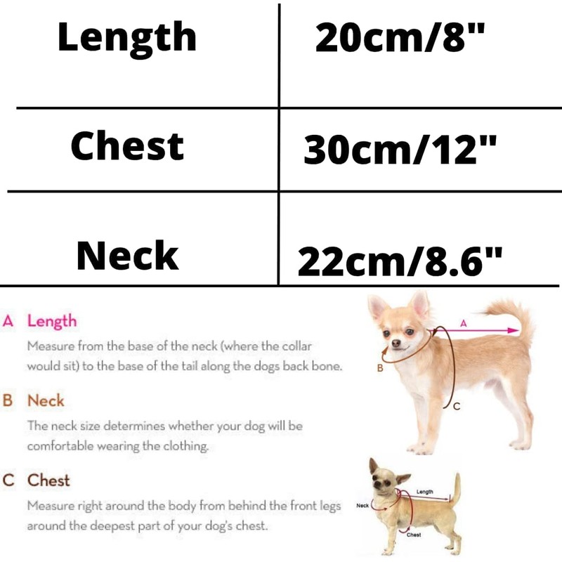 Size: | Super Tiny XXS: Length 20cm x Chest 30cm |