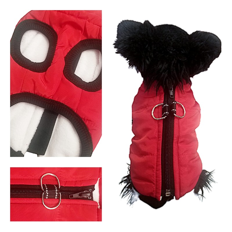 Waterproof XXS Dog Coat Padded Fleece Zip Up Coat Chihuahua Puppy Tiny Toy Clothes Teacup Miniature Tiny Breeds (Red, XXS)