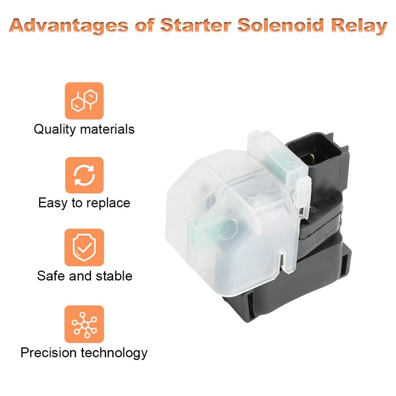 - Function: The starter solenoid relay adopts energy-saving design, low power consumption, and has safety protection function, which can detect and cut off abnormal current in time to reduce the risk of accidental failure