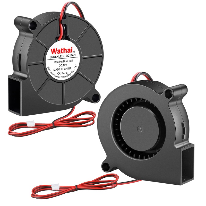 Wathai 5015 Blower Fan 12V, Ball Bearing DIY Brushless Cooling for Ender 3 with 1000mm/ 39in Wire, Turbo Centrifugal 12 Volt Fans Replacement 2 Pack
