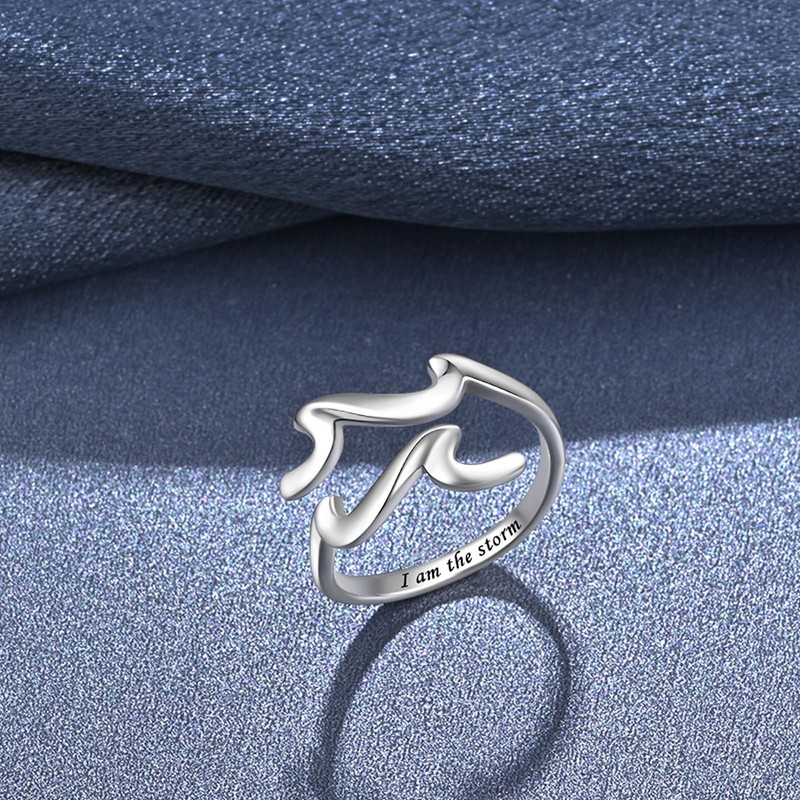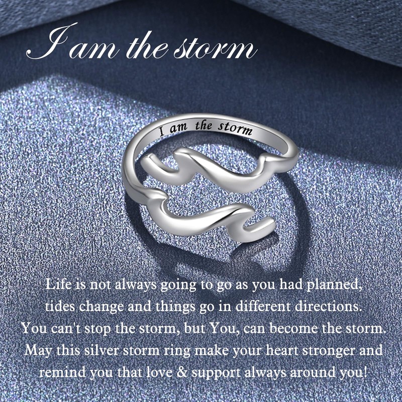 Wave Ring - 925 Sterling Silver I Am The Storm Ring Adjustable High and Low Ring Inspirational Jewelry for Women