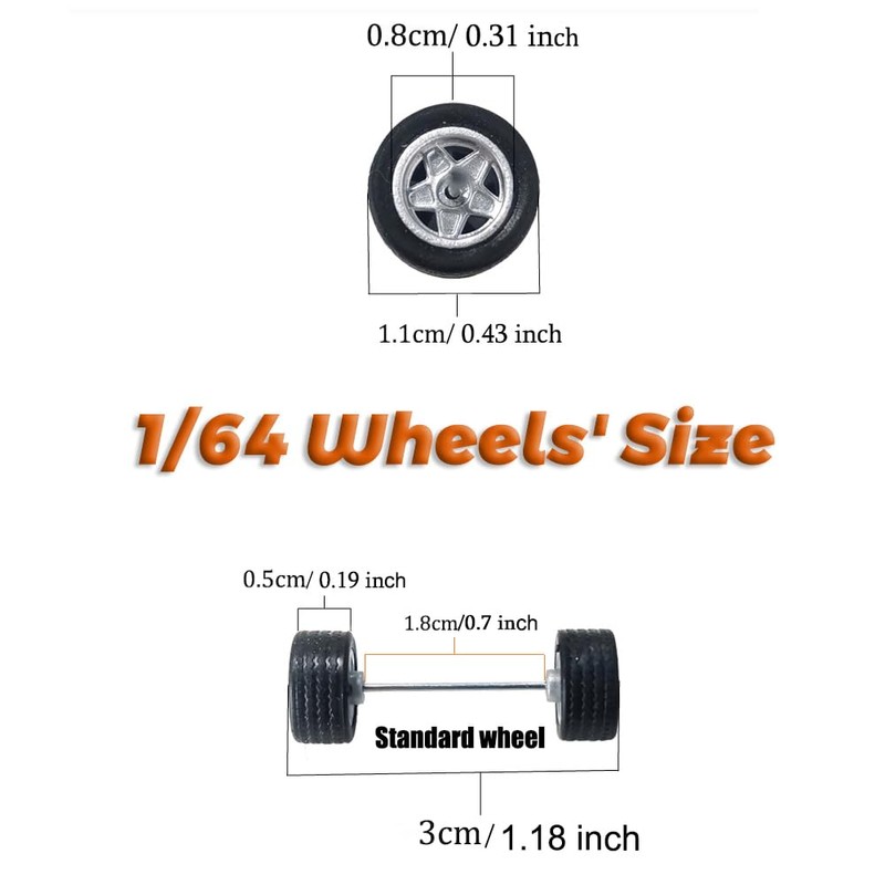 - [ Size & Scale ] : Wheels' Diameter is 11mm/0.45In, Suitable for 1/64 scale Diecast Model Cars.