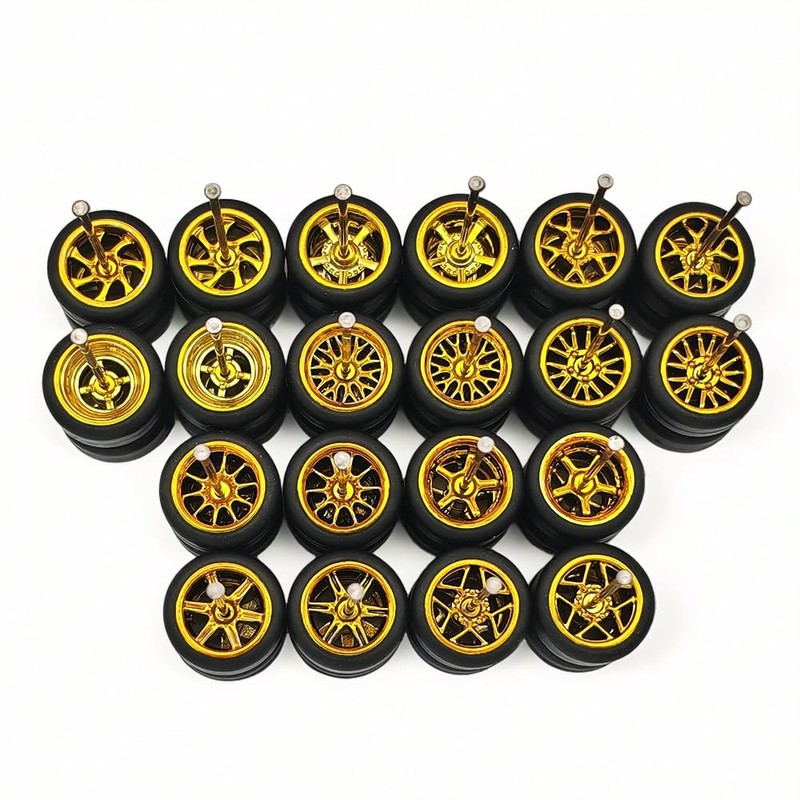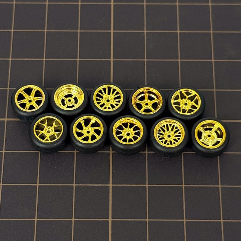 WAVEIST 1/64 Wheels and Tires,Real Rider Series,for Car Culture, The Same Color Electroplated gold but Different Styles,10 sets in a Pack. (Electroplated gold)