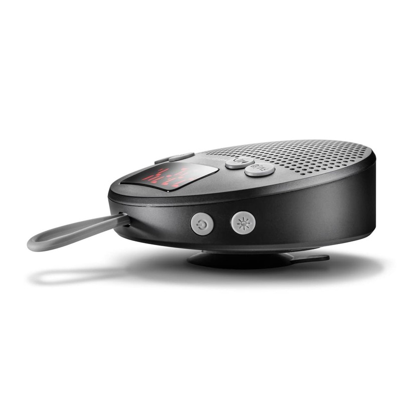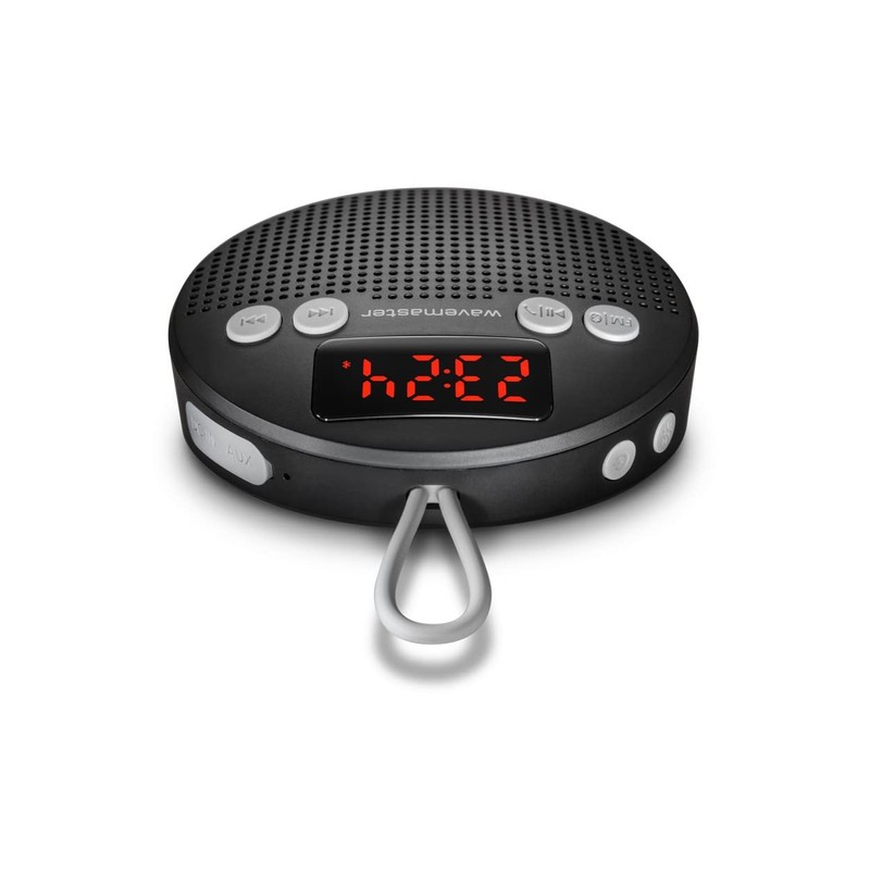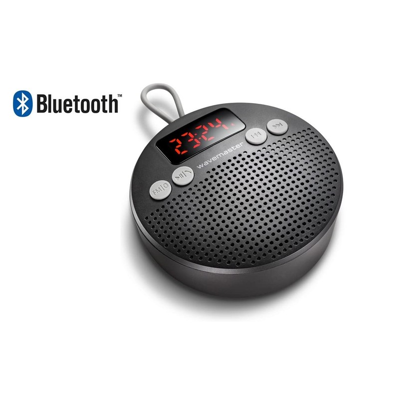 Wavemaster MOBI-3 Portable Bluetooth Speaker for On the Go (360° Sound Field) with Radio, Alarm Clock and Hands-Free Function for Mobile Sound Sources, IPX5 Splash Protection, Anthracite/Grey