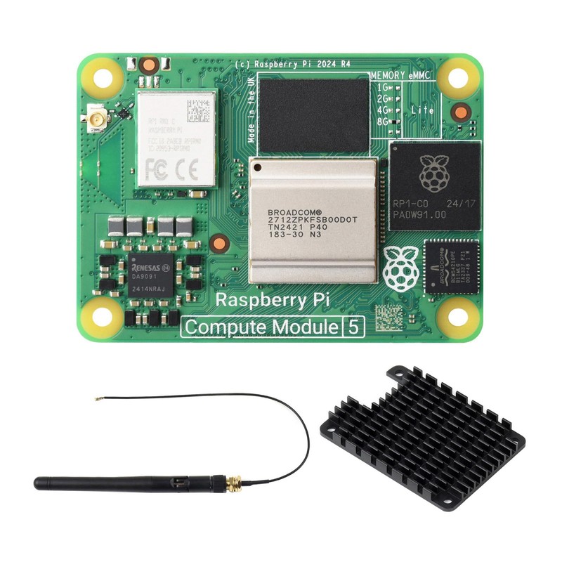 Waveshare CM5 Pi Compute Module 5,Comes with an Official Raspberry Pi CM5108000 (with Wireless, 8GB RAM, 0GB eMMC Flash), an Antenna Kit and a HEATSINK