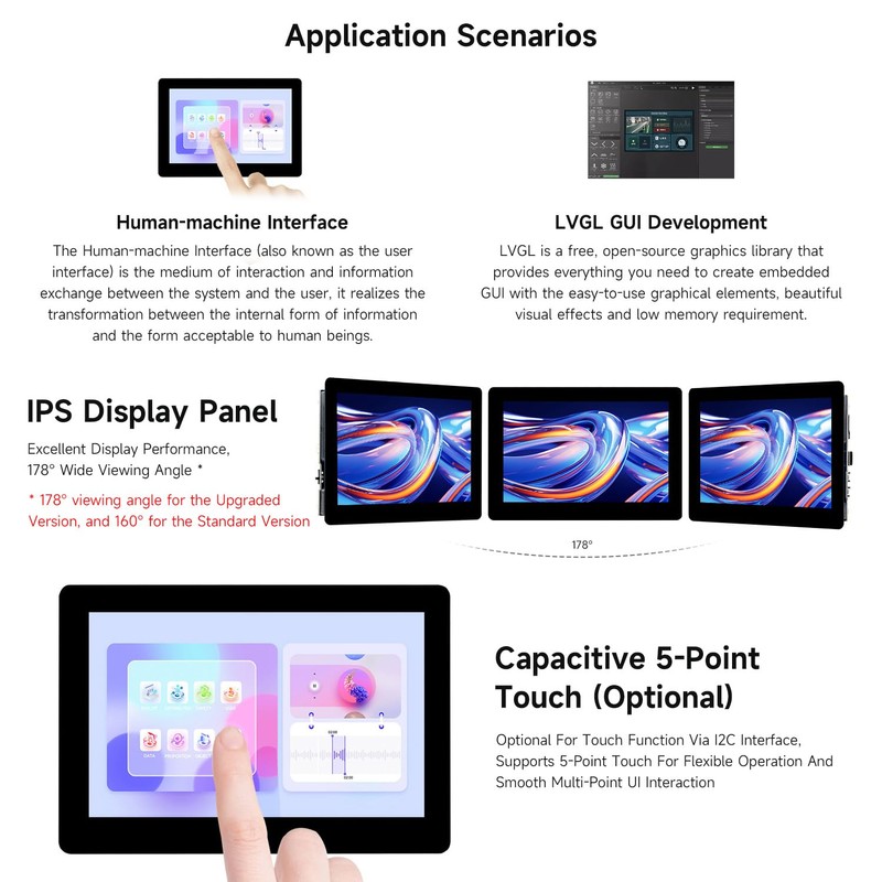 - Display: Onboard 5inch LCD display, options for 800×480 resolution, 65K color