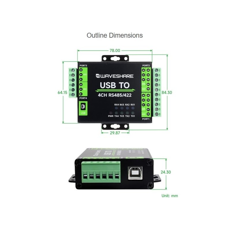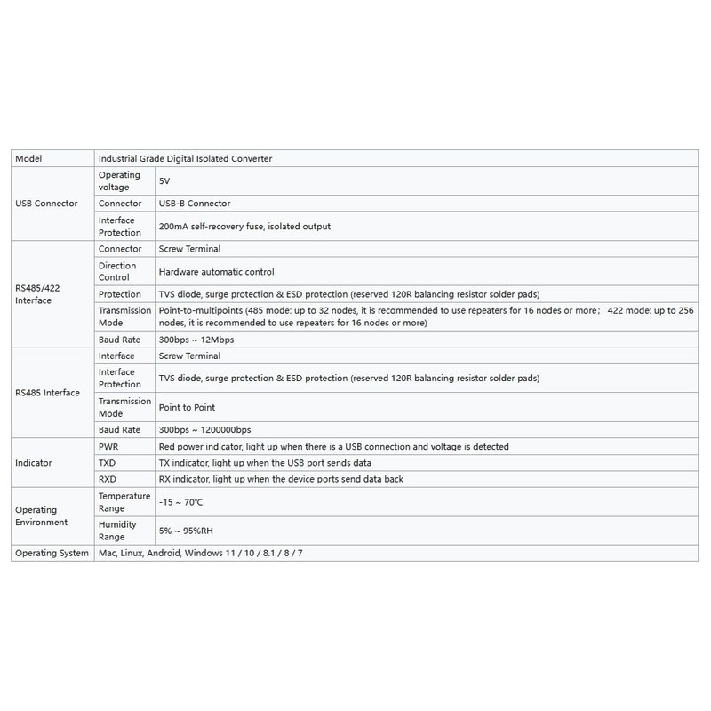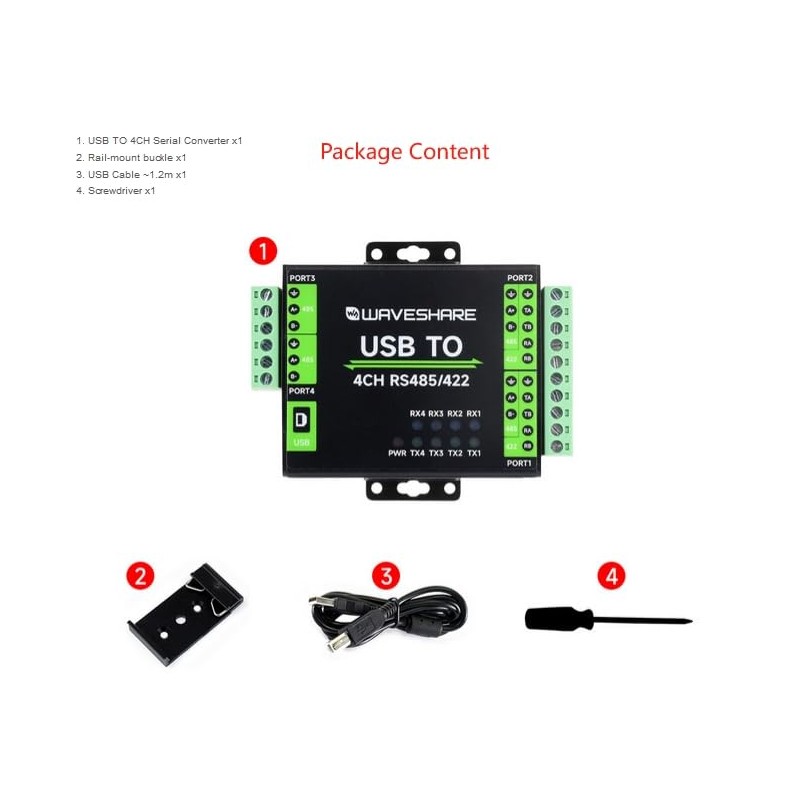 - Supports USB to 4-ch multi-functional serial port, convenient for expanding or debugging various industrial serial port devices; Supports USB to 2-ch isolated RS485/422 + 2-ch isolated RS485