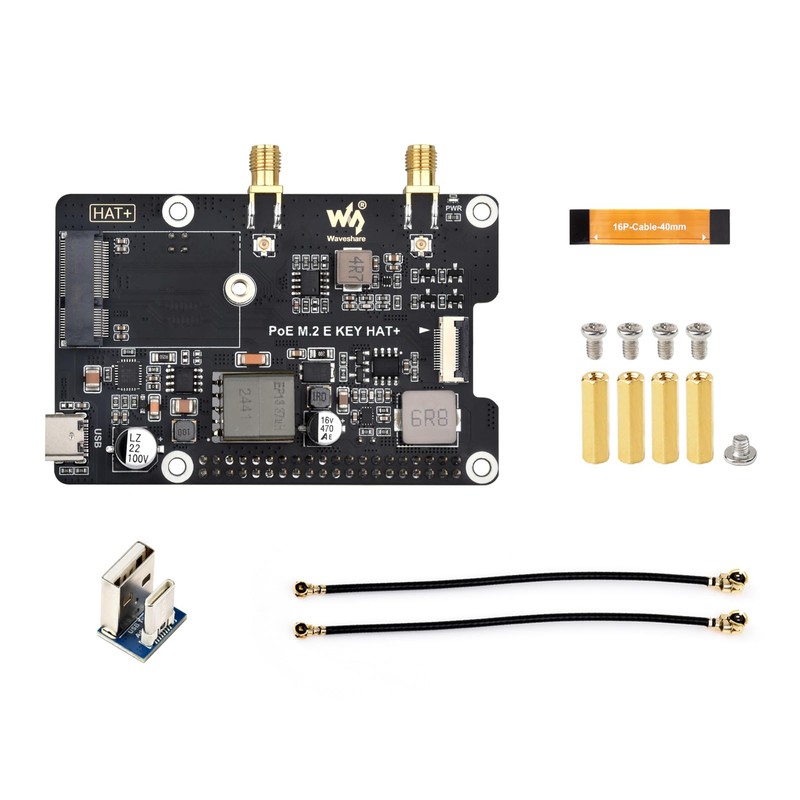 Waveshare PCIe to M.2 E Key Adapter with PoE Function, Compatible with Raspberry Pi 5, Support NGFF (M.2 E Key) Wire-Less NIC, Raspberry Pi 5 PCIe HAT