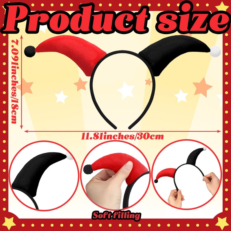 - Clown Headband Features: designed in bold red and black with playful pom pom accents, these headbands add instant humor and festive flair to any outfit; Crafted with attention to detail, they boast a polished look while radiating lighthearted energy