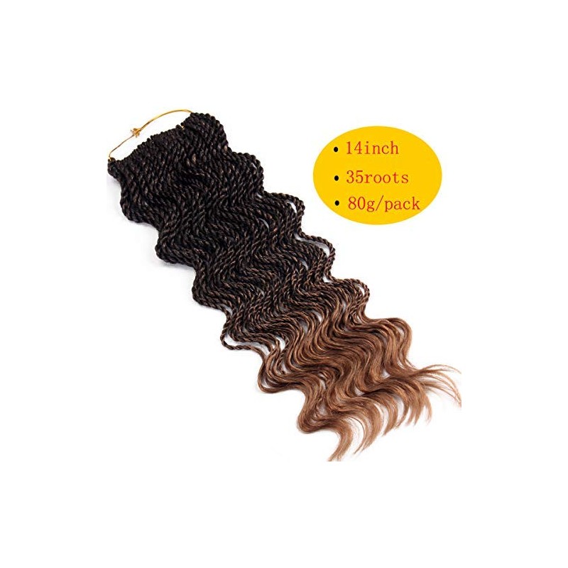 Wavy Senegalese Twist Crochet Braids 6packs/lot 14Inch 35Strands/Pack Synthetic Crochet Hair Curly Twist Braiding Hair (14 Inch, T1B/27#)