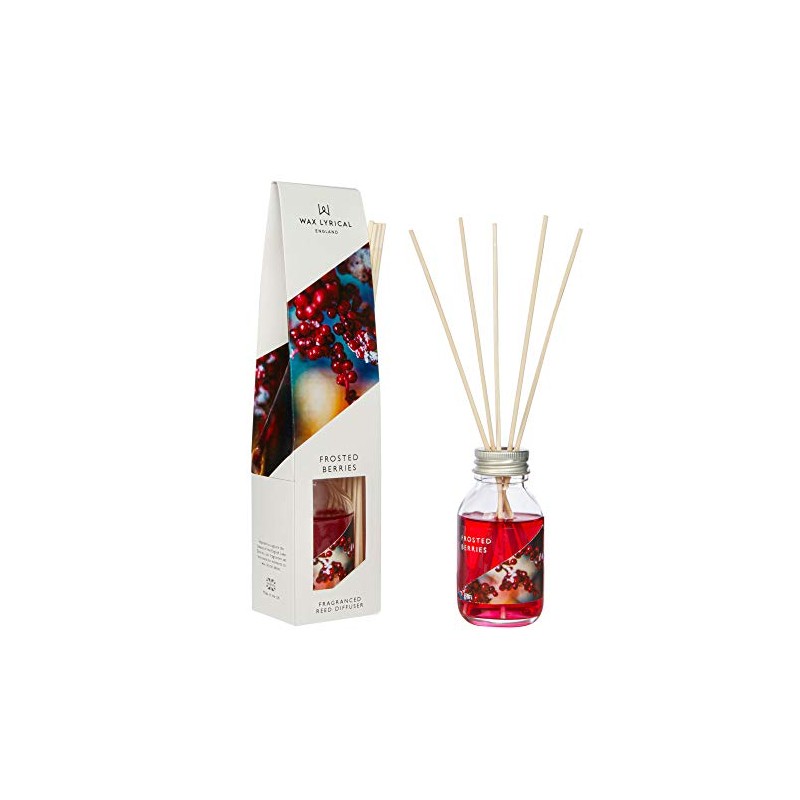 • Frosted Berries is a deliciously edible aroma with a festive fruity red berry blend. Cranberry takes the lead, followed by ripe raspberry, green apple and grape. A hint of citrus is supported by sweet notes of powdery vanilla to close the scent. Bring a festive aroma to your home with this diffuser that contains 100ml of Frosted Berries fragrance. This collection is a true celebration of Wax Lyrical and our commitment to creating room fragrances made in England.