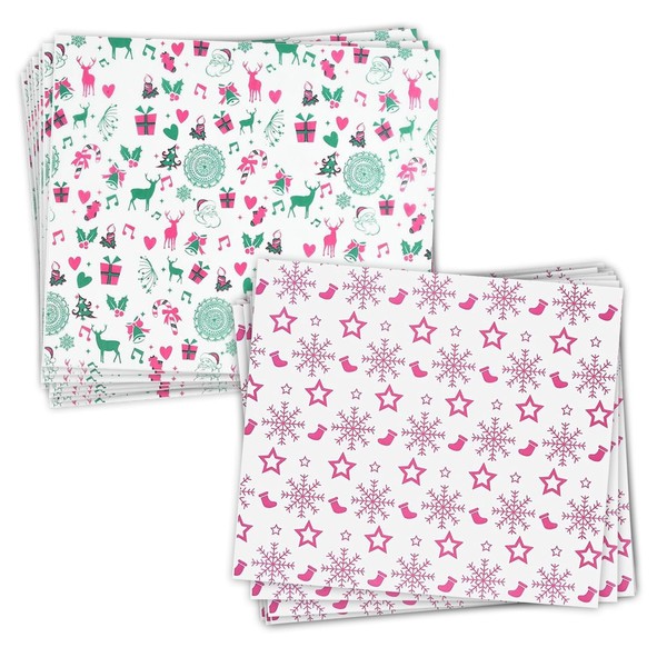 - Christmas theme: you will receive 100 sheets of wax paper Christmas in 2 Christmas patterns (50 sheets each), including Santa, elk, snowflakes, Christmas stockings, etc. A sufficient amount to meet your packaging needs.