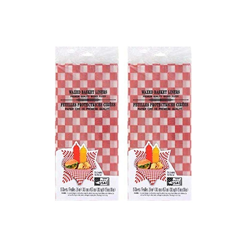 Waxed Basket Liners Red White Checkered Deli Paper Sheets - for Food BBQ Cookout Picnic - 15in.x 18in -
