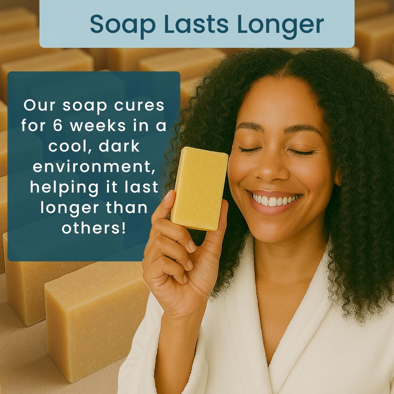 - HANDMADE IN THE USA: Our natural bar soap is aged for a minimum of 6 weeks in a cool, dark environment. This allows the soap to fully cure, making it last longer than other goat milk soap bars.