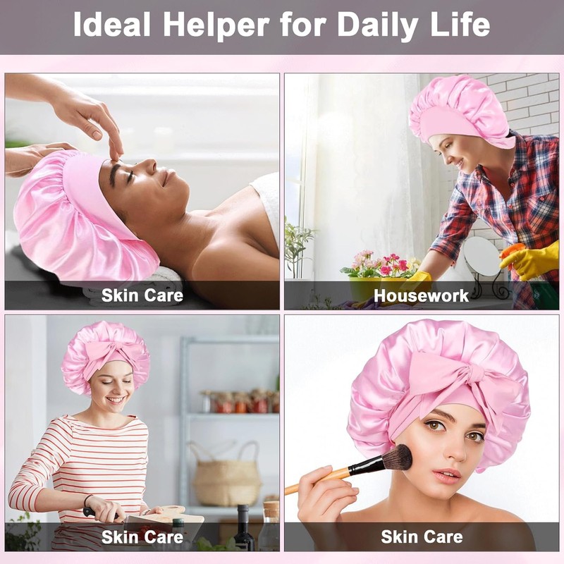 - 【Amplia gama de usos】 Este gorro de seda satinada no solo es bueno para dormir, sino que también es adecuado para lavarse, ducharse y cuidar la piel, sin importar el maquillaje, la limpieza, la cocina, el estudio, el trabajo, etc. Es liviano, no agrega mucho peso extra para tu cabeza.