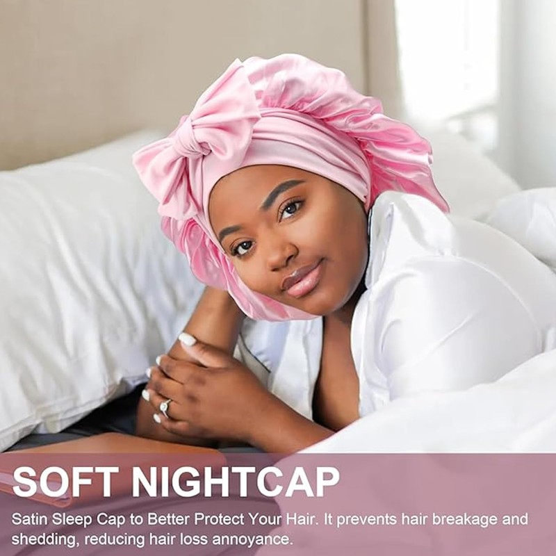 - 【Material de alta calidad】Nuestro gorro de noche está hecho de tela satinada de alta calidad, suave, inodoro, liviano, transpirable y no tapado. Nuestro gorro de satén para el pelo de noche es cómodo de llevar, duradero y tiene una larga vida útil.