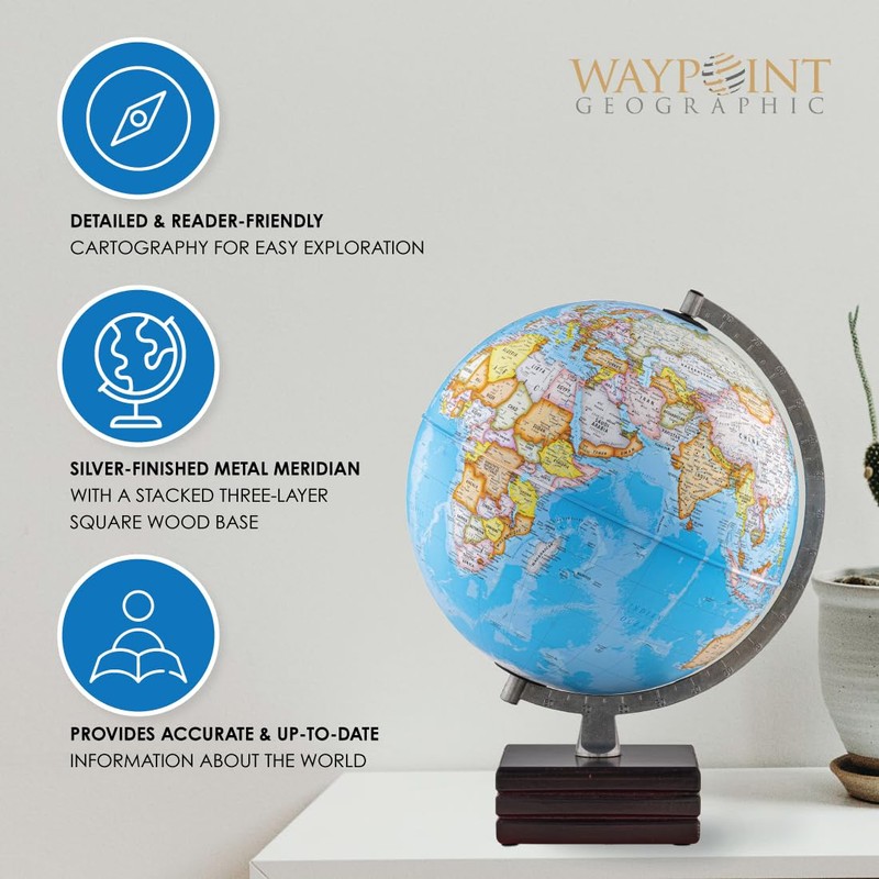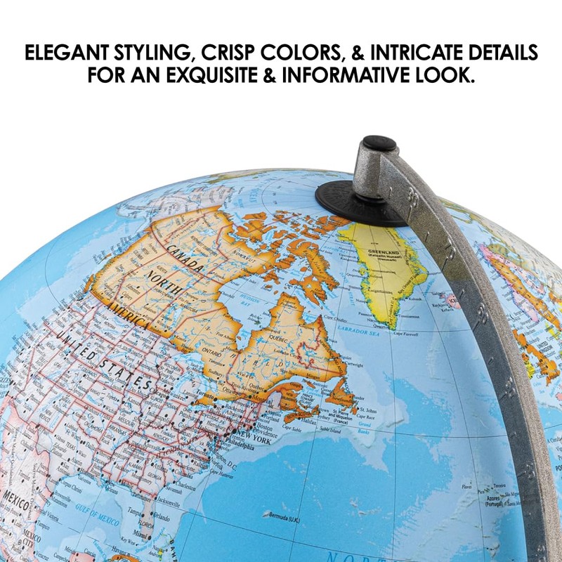 - Up-to-Date Globe: The globe's political boundaries and topographical features are clearly marked and easy to read, allowing for a better understanding of the world’s geography. The crisp colors and fine details offer an informative look into our world