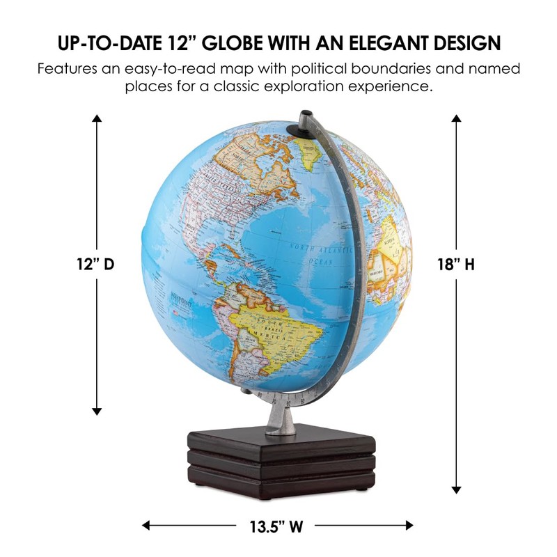 - Refined Design: Measuring 18“ H x 13.5“ W x 12“ D, the globe is a visually stunning piece that can enhance the aesthetics of your room. With its refined design and durable construction, it is a must-have for anyone interested in geography or world travel