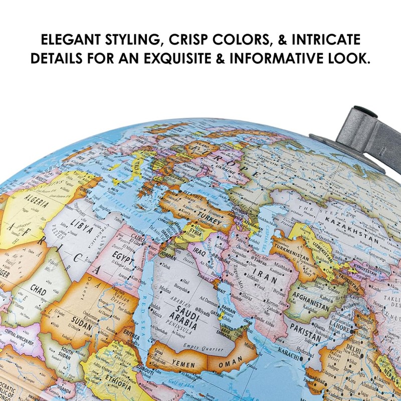 - Up-to-Date Globe: The globe boasts up-to-date cartography with thousands of named places. The vibrant colors and clear, easy-to-read font of the globe enable easy identification of different places of the world to learn about their unique features.