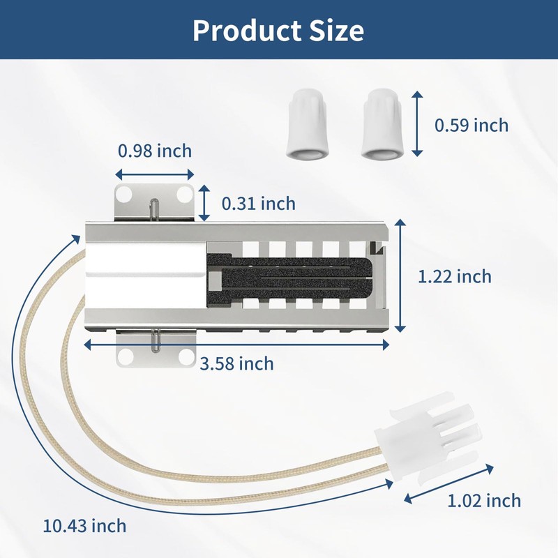 - [Premium Quality]: This wb13k21 for Ge oven igniter is made of high-quality materials and undergoes rigorous testing to ensure oven igniter meets strict quality standards, making wb13k21 oven igniter replacement safer and more reliable to use. wb13k21 oven igniter also has good heat resistance and can reach temperatures of 2000-2800℉ in less than 60 seconds. In addition to the flat oven lighter replacement, this product also includes a sturdy connector plug and 2 ceramic nuts, which are more suitable for your gas stove or oven and help extend the life of your gas stove.