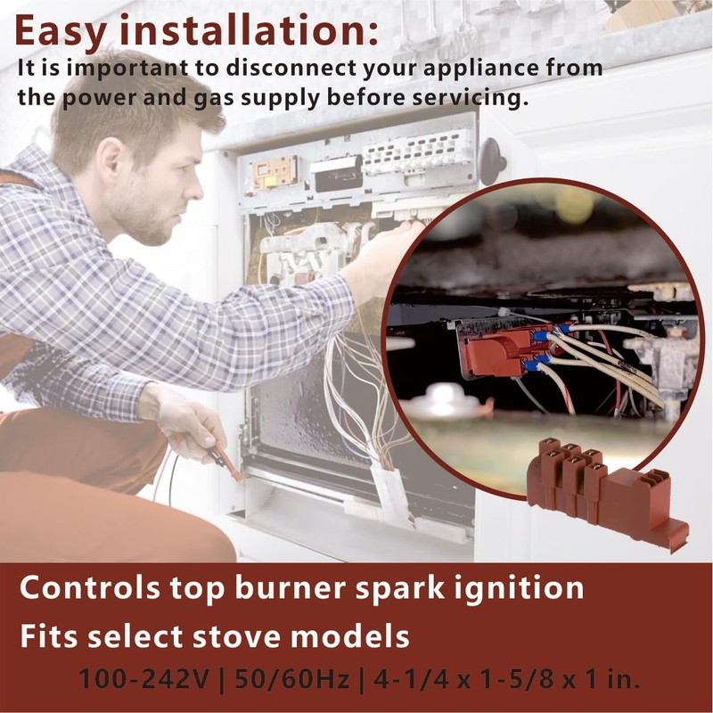 - 100-242 Volt Pulse Ignitor Genuine OEM Stove Oven Spark Module. (It is recommended to disconnect the unit from all utilities before installing the module)