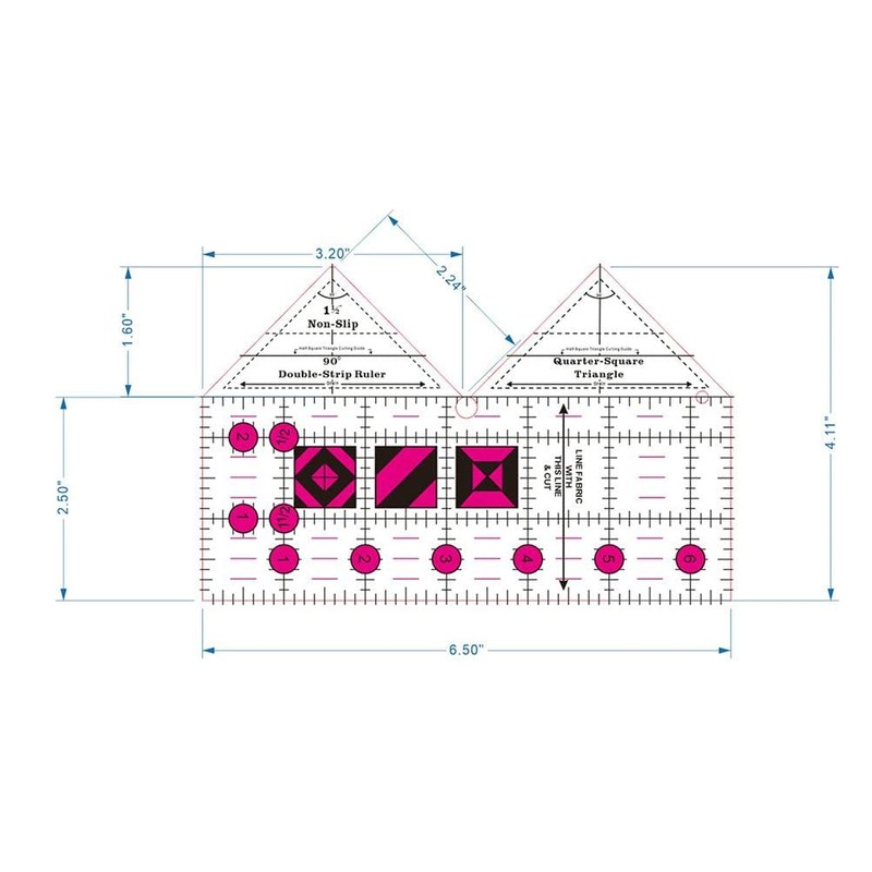• 1. This ruler is great, whether you are a professional or a hobbyist, this ruler can help you make more designs, the 45°/60°/90° ruler is designed to cut 1/2 triangle, half square , 1/4 square triangles, 45/60/90 degree triangles, trapezoids and various other triangles, with cut strips on one side and related triangles on the other, allowing you to get started faster and easier.