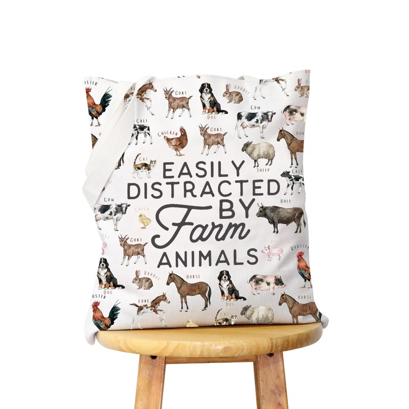 WCGXKO Dairy Farm Gift Farm Animal Lover Gift Easily Distracted By Farm Animals Canvas Shopping Bag Tote Bag (EASILY Tote CA)