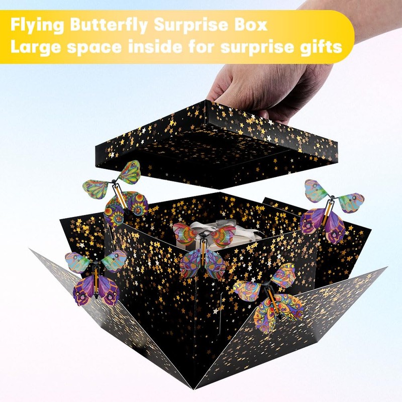 - 【Wonderful Effect】This Butterfly Explosion Gift Box is a masterpiece for creating atmosphere and conveying feelings. On all kinds of special occasions, when the recipient opens the gift box, the built-in butterfly flies out, bringing surprise and engraving unforgettable memories.
