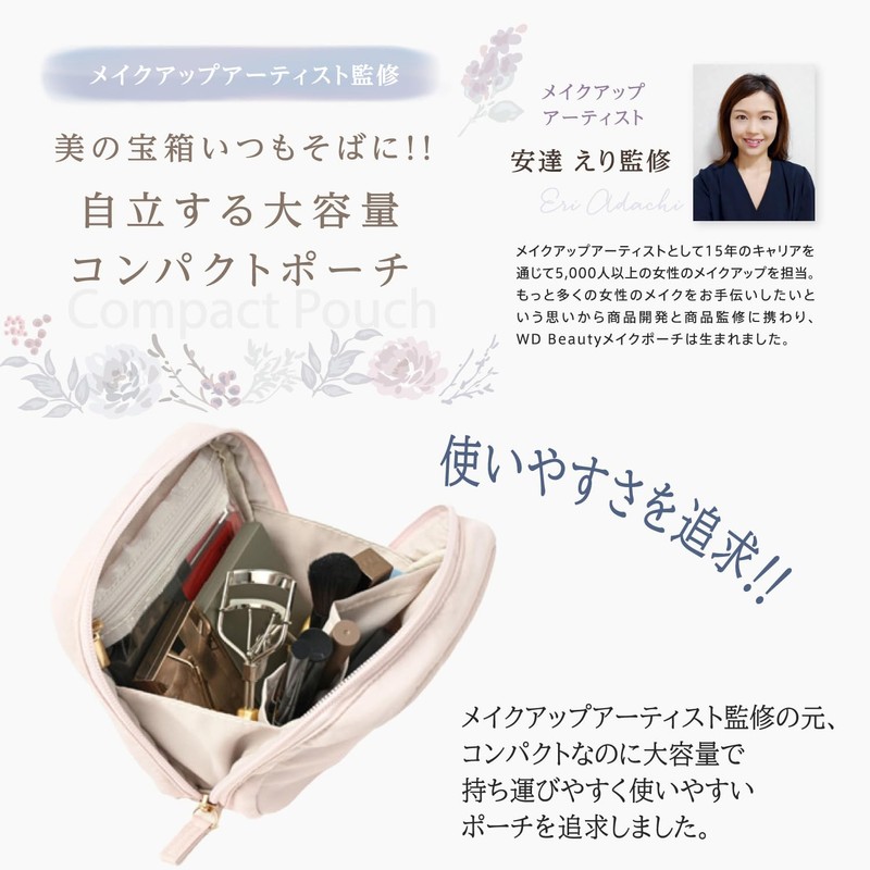 WDB (Supervised by Makeup Artists) Compact yet Large Capacity, Easy to Carry & Easy to Use, Makeup Pouch, Makeup Pouch, Bag-in-Bag, Travel Pouch, Small Items, Pouch, ciel pink