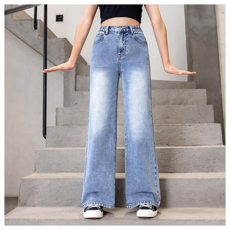 - Features: Casual denim pants with bow print, zipper fly, basic five pockets, wide leg, high waist, loose fit