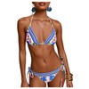 WDIRARA Women's 2 Piece Floral Print Swimsuits Geometric Halter String Triangle Bikini Set Beach Bathing Suit Multicolor Blue Small