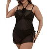 WDIRARA Women's Plus Size 3D Flower Sheer Mesh Coverup Drawstring Side Sleeveless Split Hem Solid Cover Up, Black, 1XL