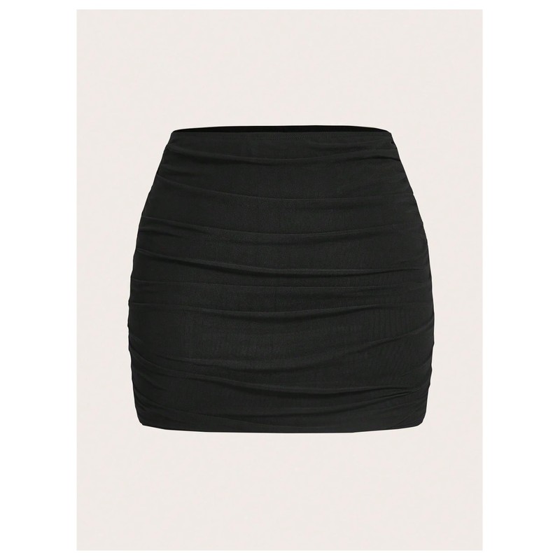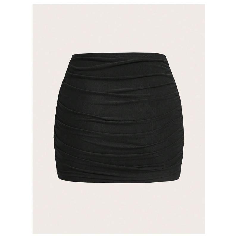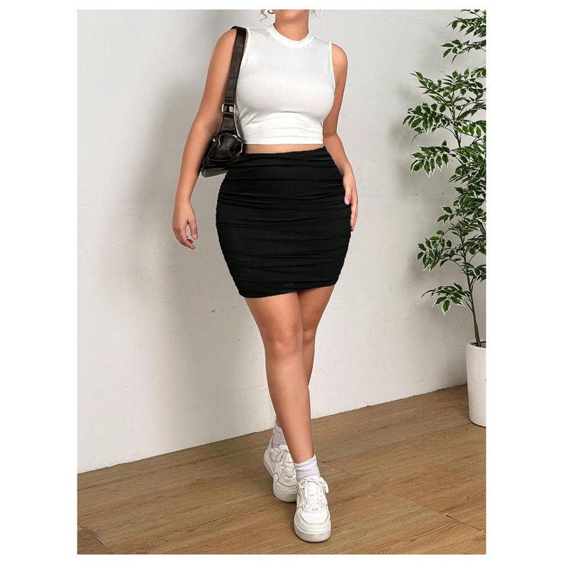 - Features: Plus size bodycon mini skirt for women, ruched, solid color, high waist