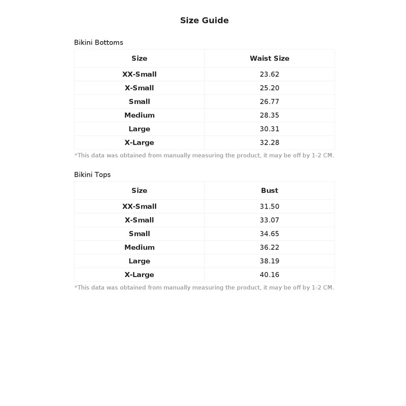 XS:Bust:33.1IN,Waist Size:25.2IN