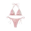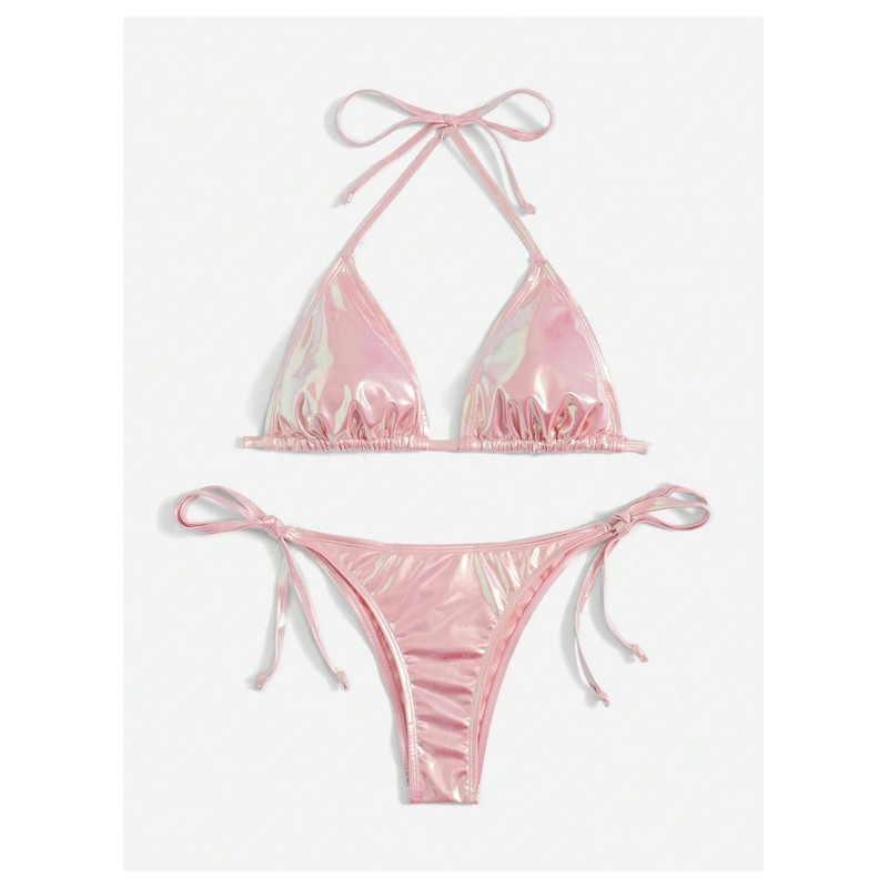 WDIRARA Women's Two Piece Metallic Halter String Bikini Set Tie Side Triangle Swimsuit, Pink, X-Small
