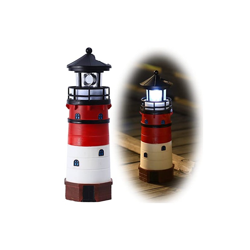 WDLFCGC Solar Powered Lighthouse - 12" Tall Solar Lighthouse with Rotating Beacon, 360 Degree Rotating Lighthouse Decoration, Best Lighthouse Gifts for Children(Round Black Top)