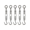WDONAY 5 PCS M4 Stainless Steel Turnbuckles Hook and Eye, Adjustable Shade Sail Hardware, Silver Turnbuckle for Wire Rope Tension