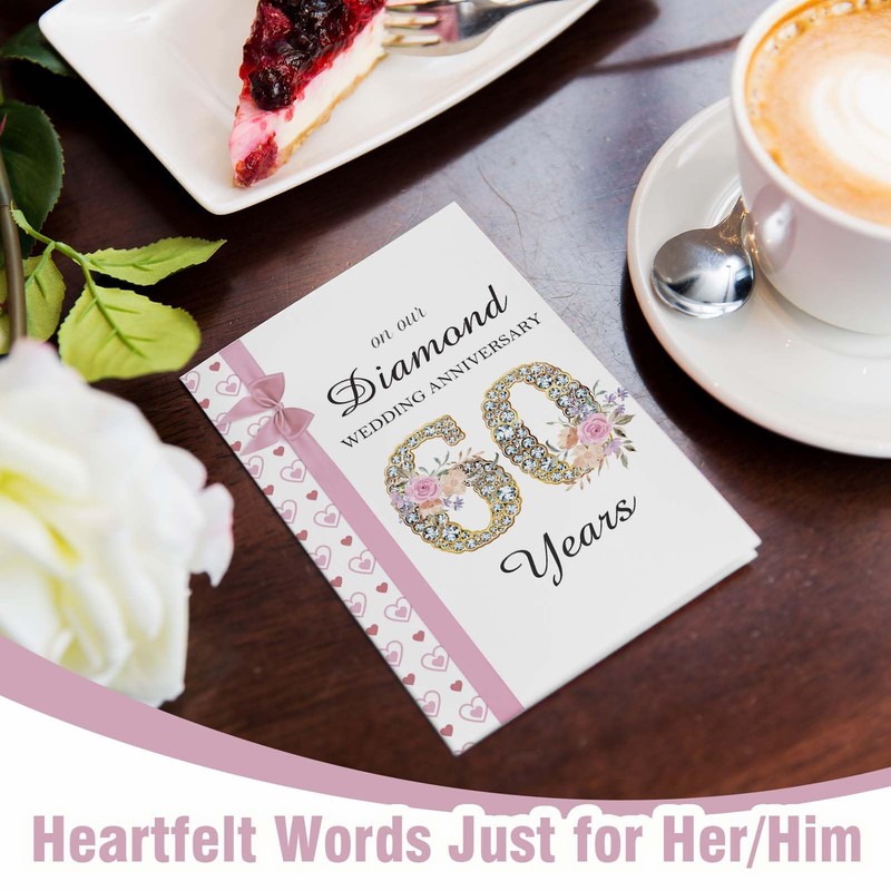WDphouly 60th Wedding Anniversary Card, Diamond Anniversary Card for Husband Wife, 60 Years Wedding Cards for Him Her
